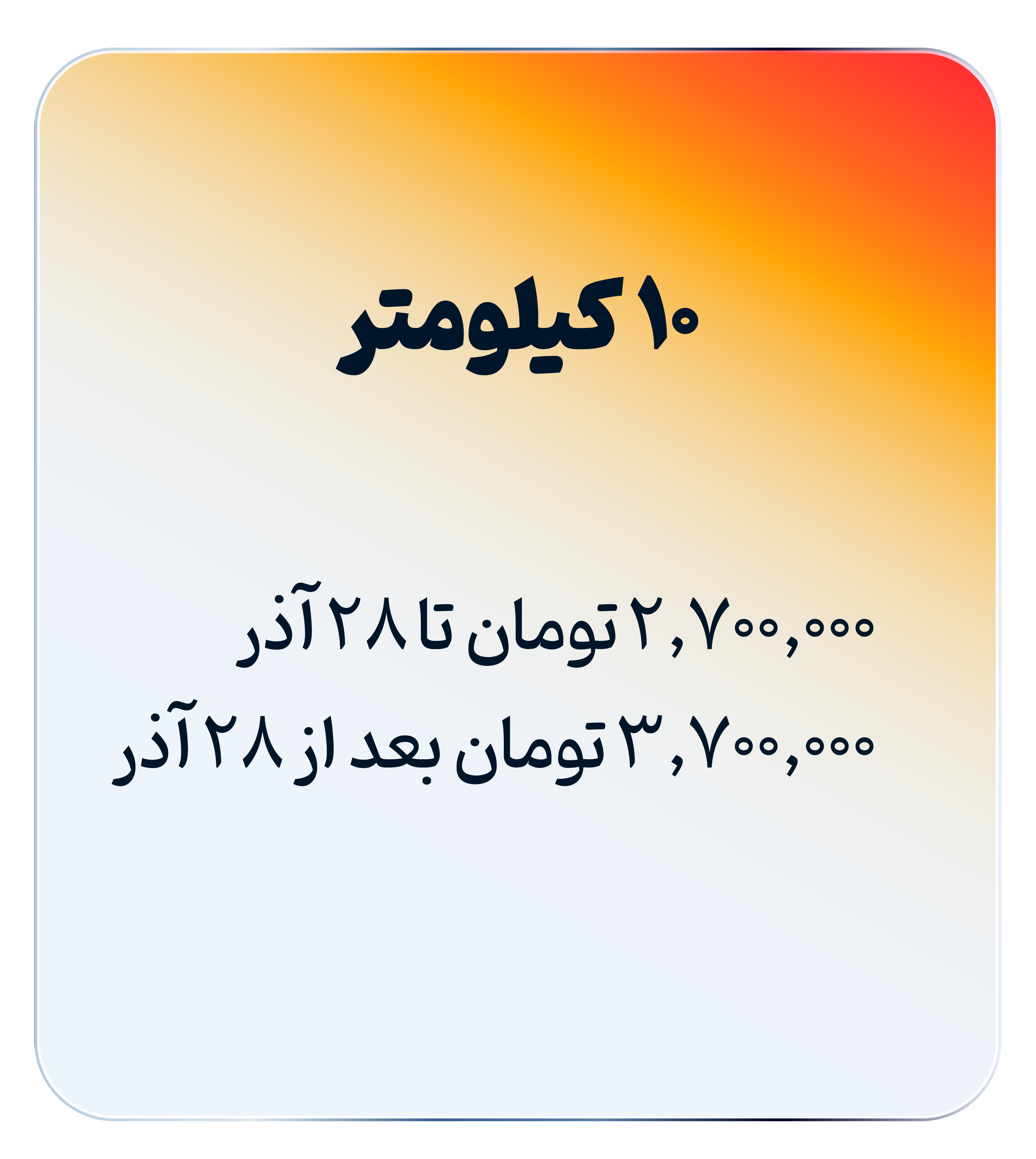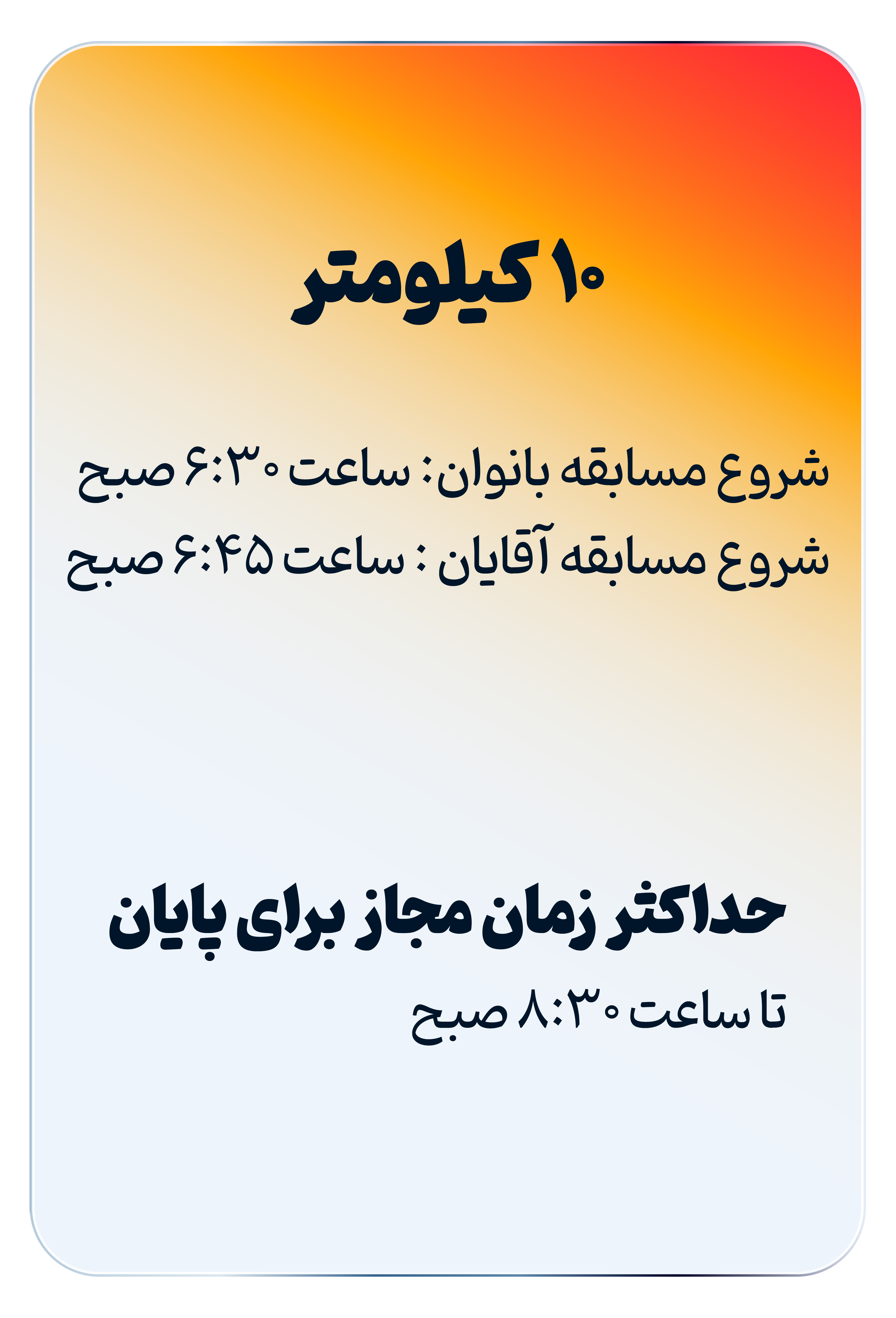 ۱۰ کیلومتر: تا ساعت ۸:۳۰ صبح