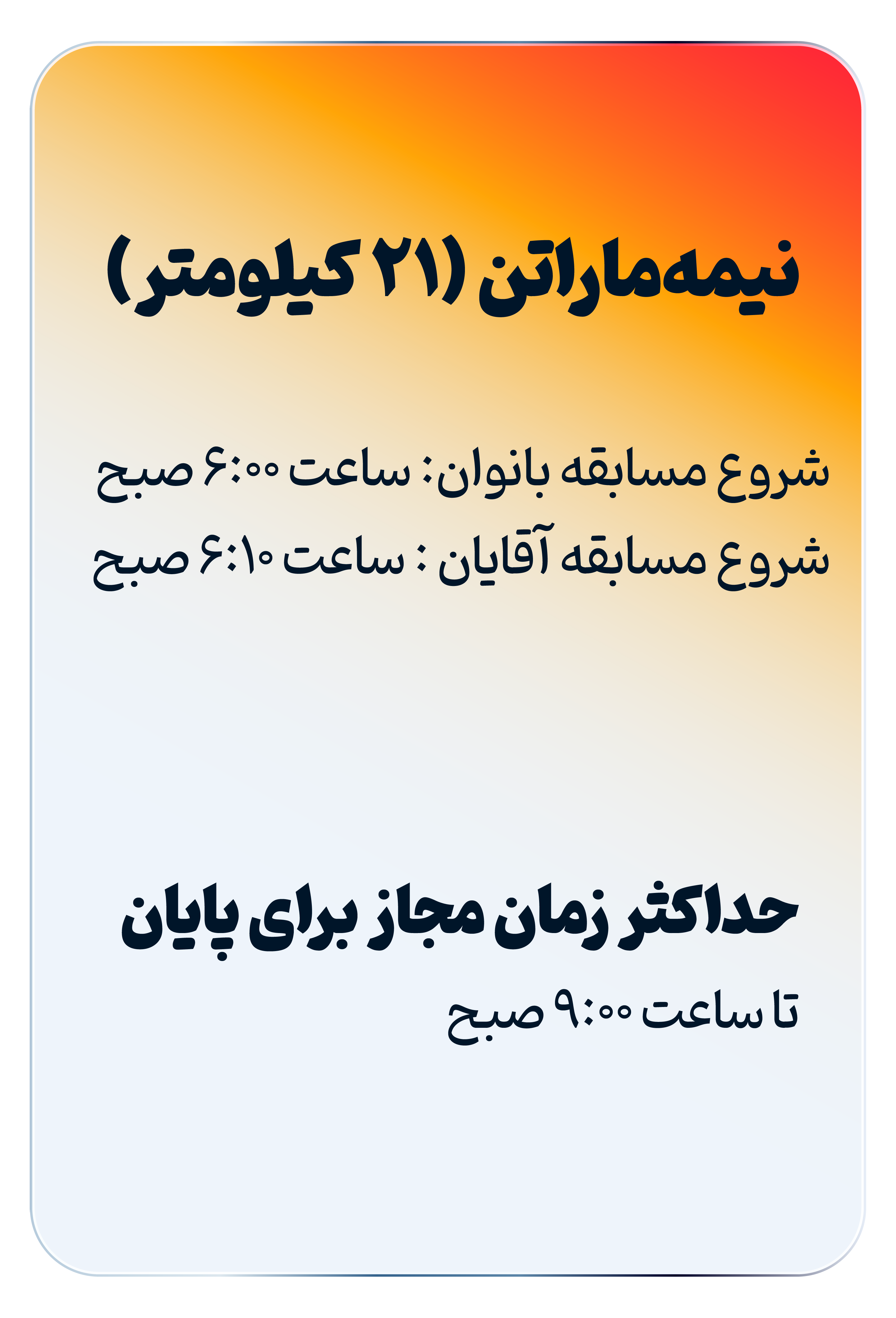 نیمه‌ماراتن: تا ساعت ۹:۰۰ صبح